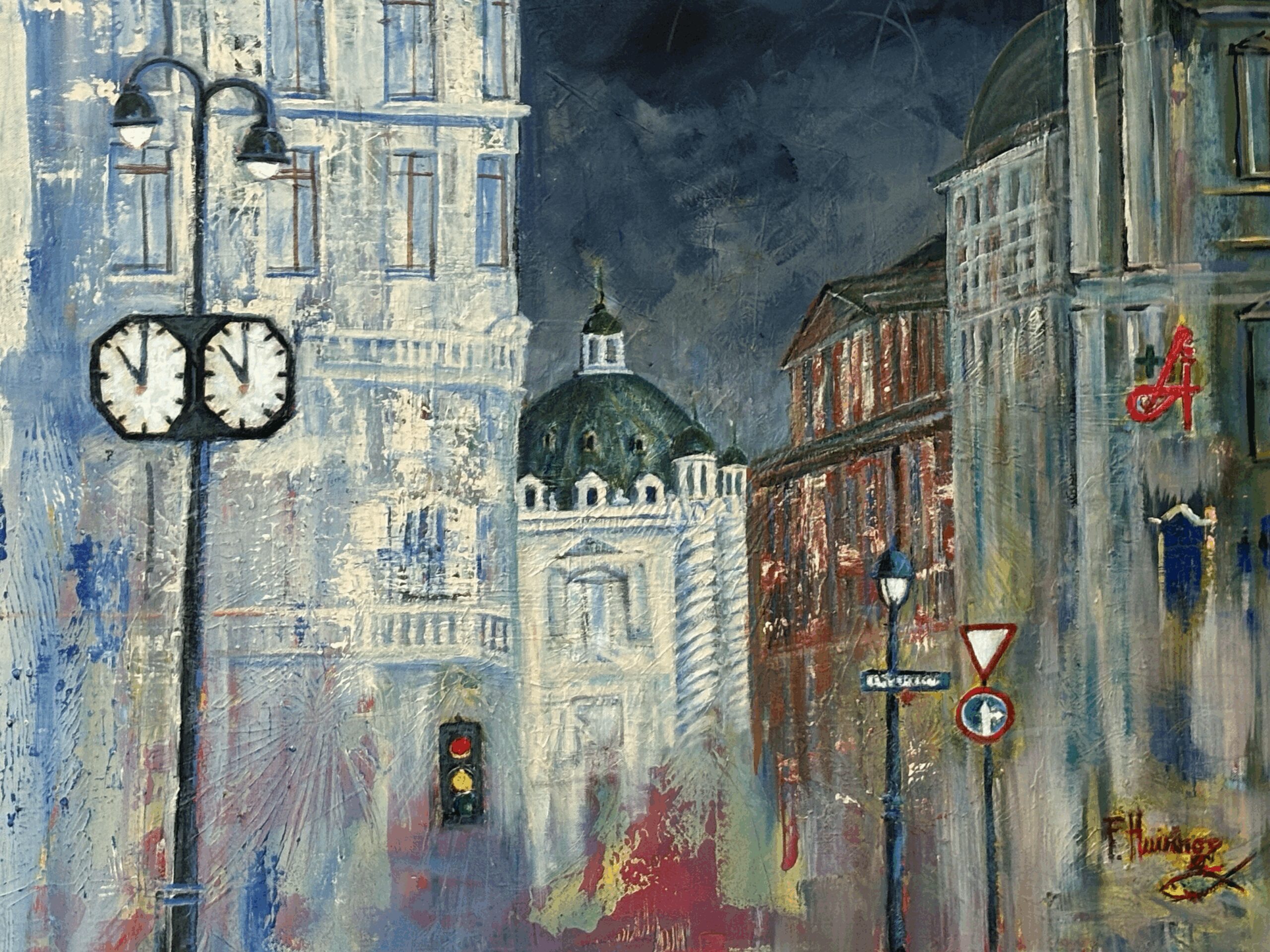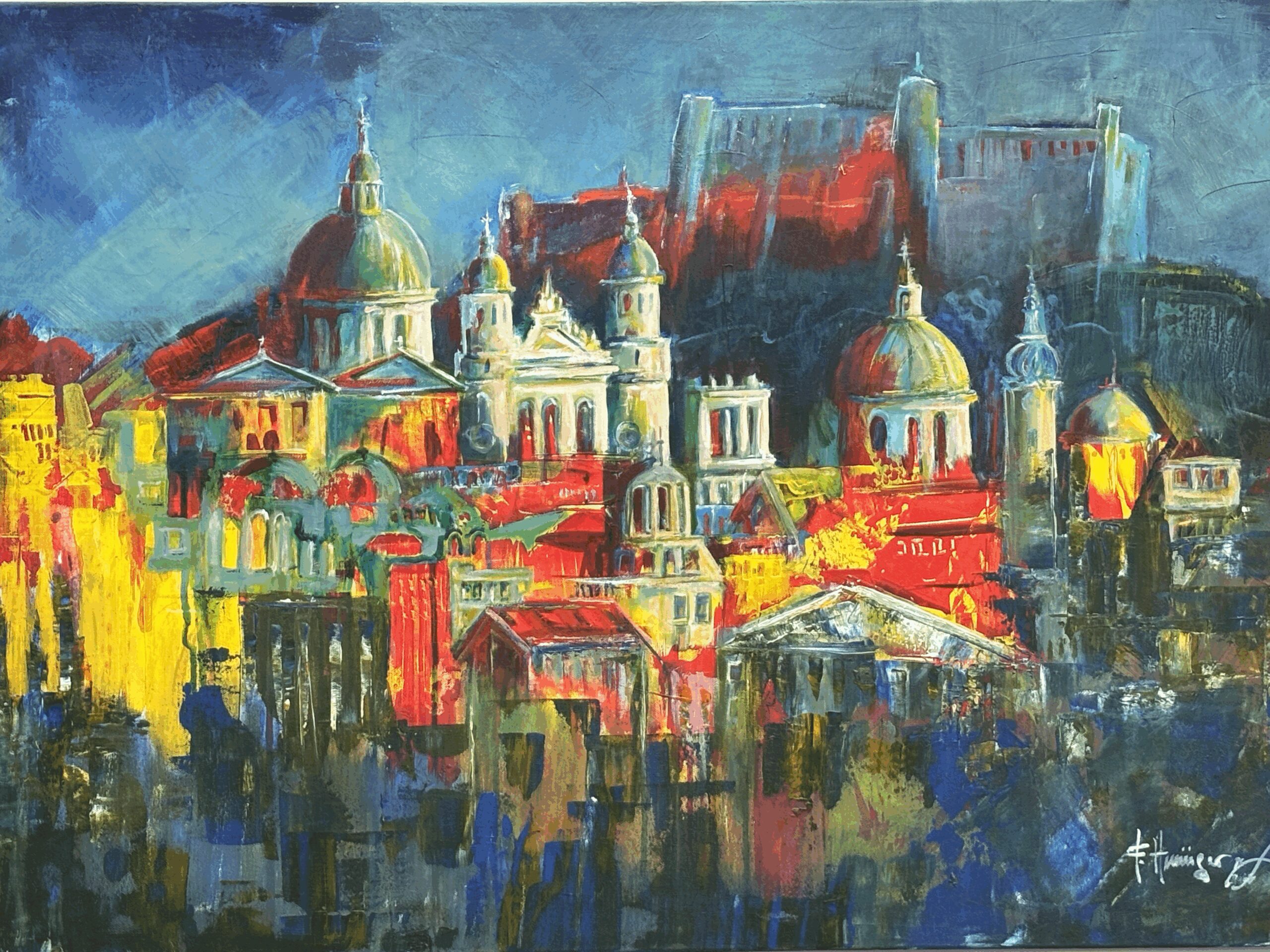 Mit prägnanten, spontan gesetzten Farbstellungen werden markante Motive und Perspektiven festgehalten. Alles erscheint von der Form befreit und doch so real.